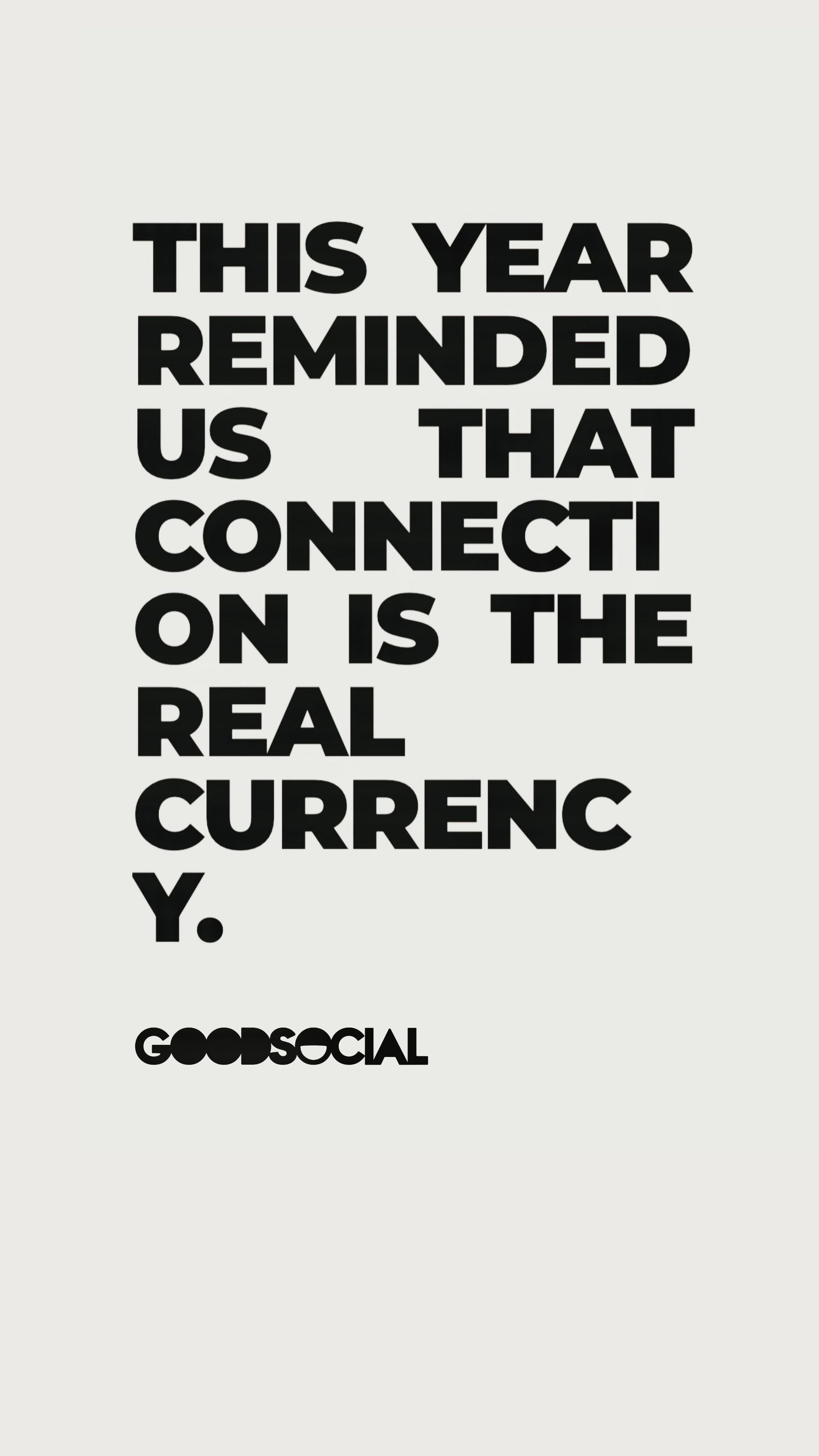 THIS YEAR REMINDED US THAT CONNECTION IS THE REAL CURRENCY.
